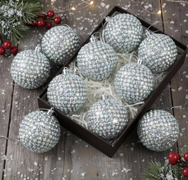 Up next, layer your smaller ornaments in various sizes. I like to use large, medium and some smalls all over the tree and keep the top of the tree mostly smalls and tiny ornaments. I keep layering until I get the ornament coverage I like.