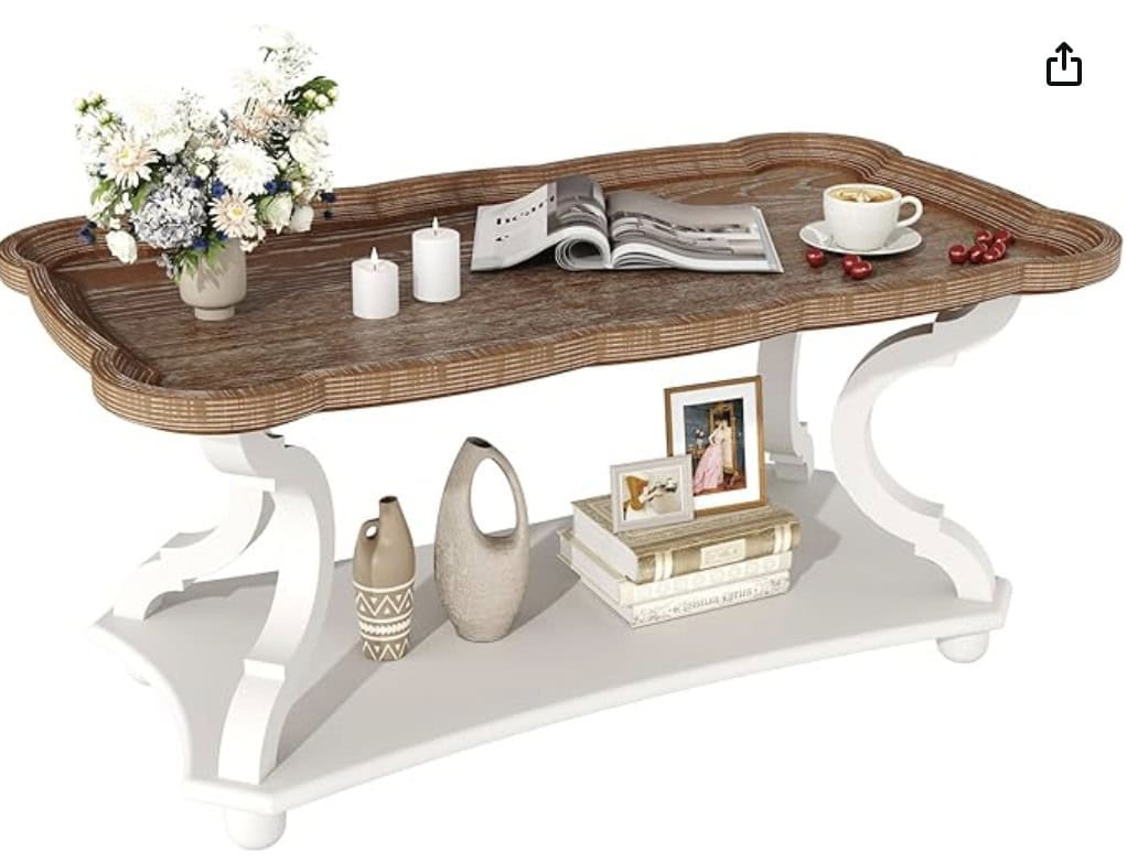 COFFEE TABLE: I usually have a large coffee table in our living room- but recently, I took it out when reconfiguring the space and love the less busy look so much. If bringing a coffee table back in- thinking it might be smaller like a trunk or something like that.