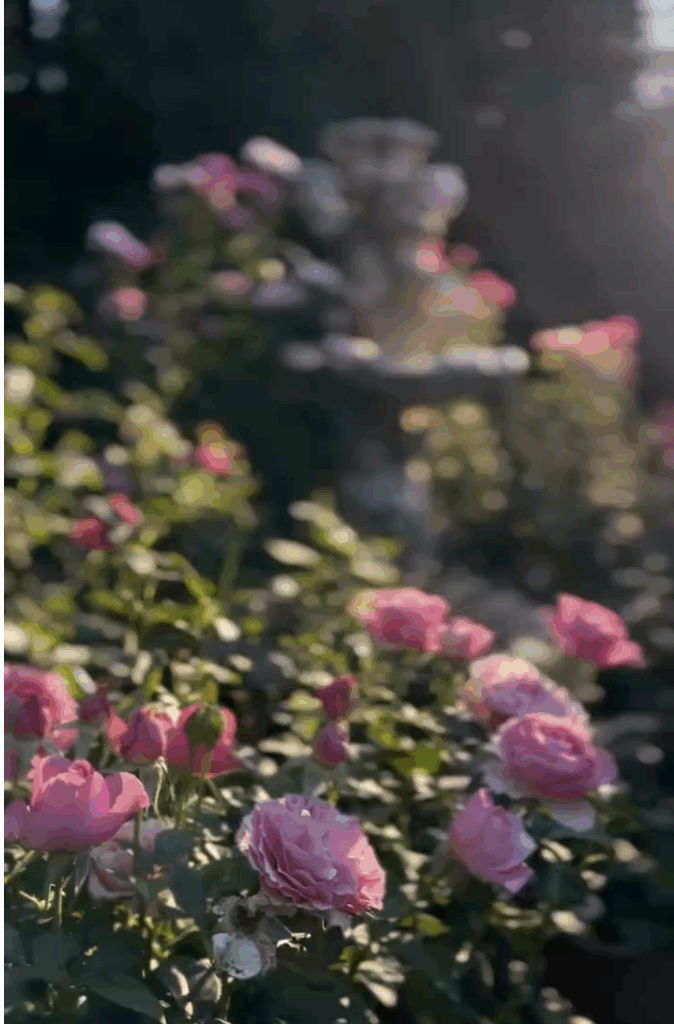 All Dressed Up – These are the pink roses in the cherub fountain garden-they start out bold and fade to blush- found at Home Depot several years ago.
