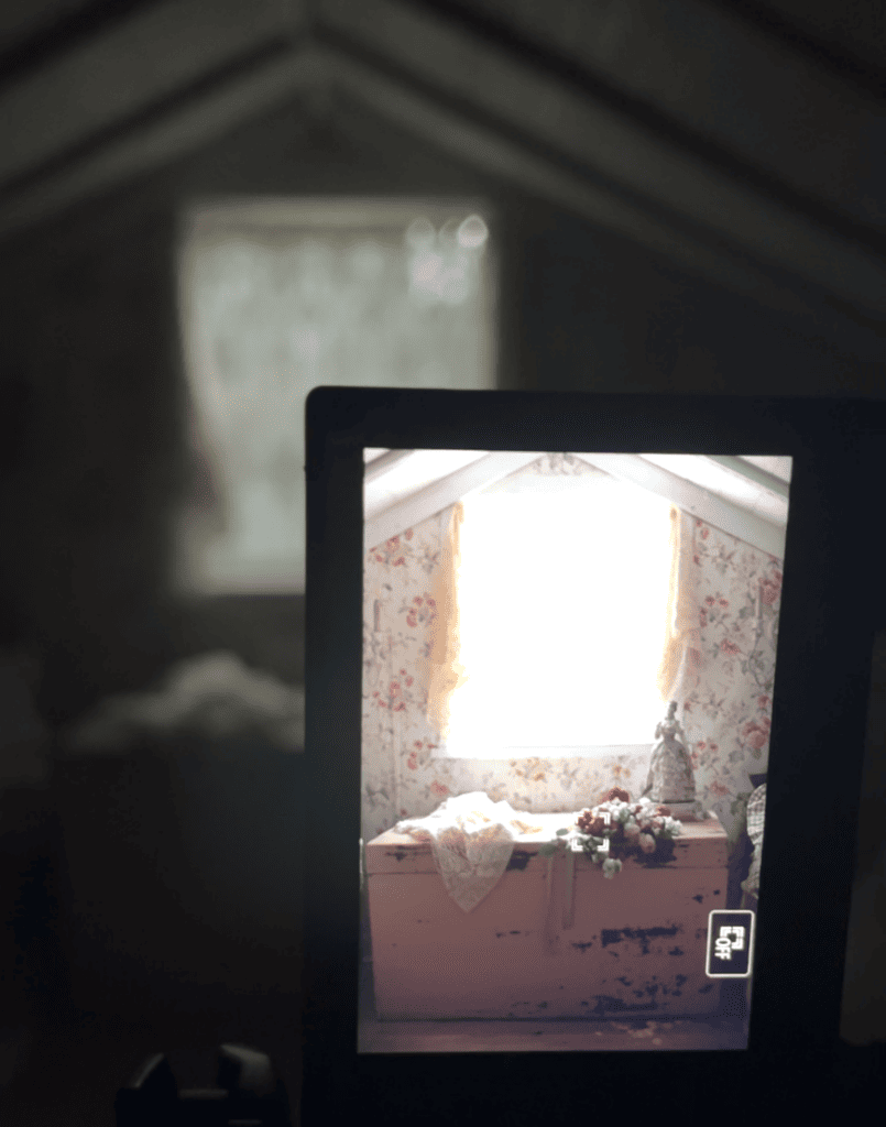 A bit of rain has been happening in California the past few weeks- and last weeks storm knocked the power out all across the state. The wind was a bit crazy and so, we mostly just stayed indoors and stayed warm by the fire until the power came back on a few days later. I managed to get some work on the computer and a few photos in the attic wrapped up. Here is a screen grab from a video of a peek I shared on instagram.